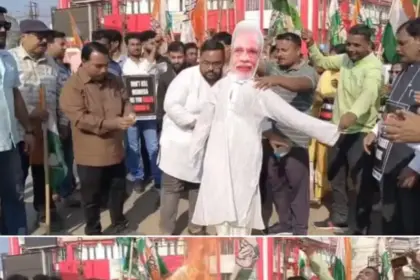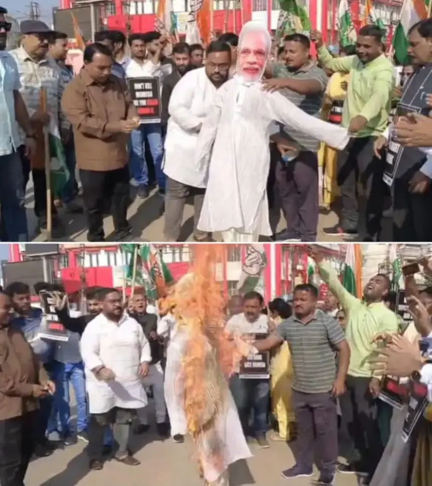 MGNREGA-র নাম পরিবর্তনের বিরোধিতায় কংগ্রেসের বিক্ষোভ, মোদির কুশপুতুল দাহ