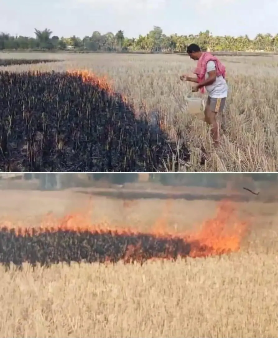 ঘড়ির কাঁটা তখন দুপুর একটায়। স্থানীয় প্রত্যক্ষদর্শীরা জানাচ্ছেন, “দূর থেকে মনে হচ্ছিল যেন পুরো কৃষি মাঠ আগুনে দগ্ধ।” কিশোরেরা মুহূর্তের মধ্যেই পালিয়ে যায়, কিন্তু আগুনের বিস্তার রোধ করতে স্থানীয়রা তৎপর হয়। কৃষক চন্দন মজুমদার জানান, গবাদি পশুর জন্য ৬ হাজার টাকার খড় অন্যের কাছ থেকে ক্রয় করে জমিতে শুকানোর জন্য রেখেছিলেন। হঠাৎ আগুন লেগে খড় সহ অন্যান্য কৃষি জমি পুড়ে ছাই হয়ে যায়।